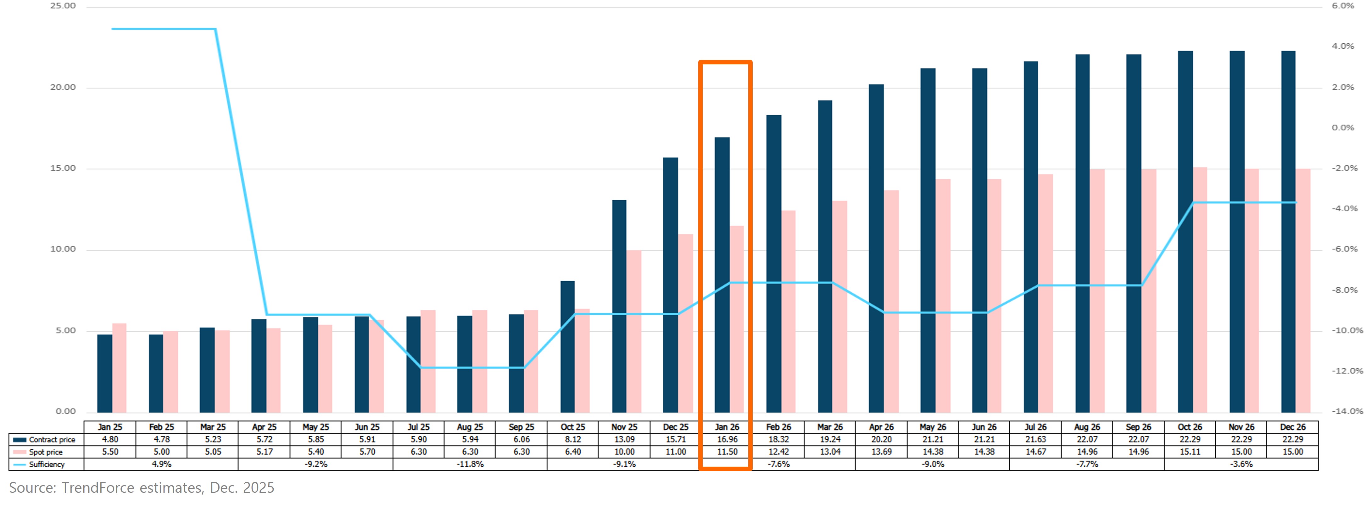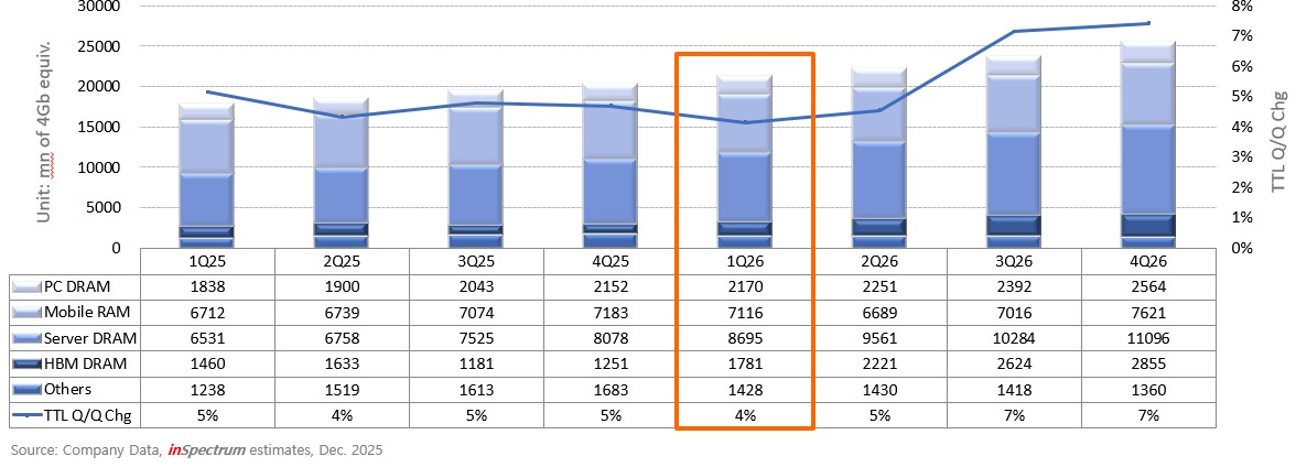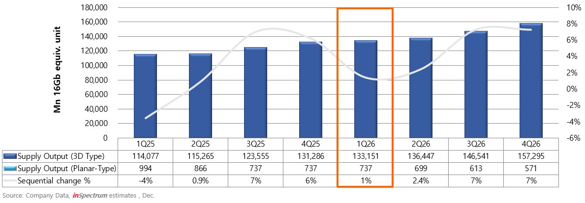 在人工智能和数据中心增长的推动下,NAND Flash需求急剧转向高容量的企业SSD,促使3D NAND产量稳步上升,平面NAND产量下降,昭示着供应结构正为适应不断变化的市场需求而实现转型。